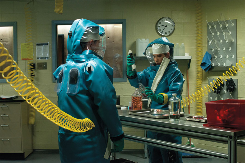 Julianna Margulies, as Dr. Nancy Jaax, had to fight feelings of claustrophobia in the infamous hazmat suit.