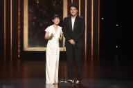Marie Kondo and Adam Pally present an award at the 2019 Creative Arts Emmys.