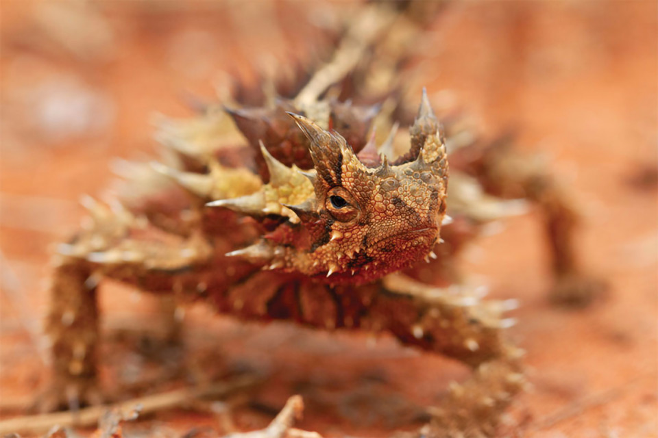 A spiky lizard known as the thorny devil keeps an eye out for predators in Australia.