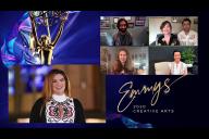 Gina Carano presents the award for Outstanding Picture Editing For An Unstructured Reality Program to Mark Morgan, Arielle Kilker, David Nordstrom, Kate Hackett and Sharon Weaver for Cheer at Night One of the Creative Arts Emmys.