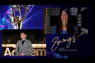 Justin Min presents the award for Outstanding Production Design For A Narrative Program to Elisabeth Williams for The Handmaid’s Tale on Night Three of the Creative Arts Emmys.