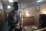 Damson Idris, as Franklin Saint, with Jesse Luken, as Officer Herb “Nix” Nixon, in an episode of FX’s Snowfall written by Walter Mosley