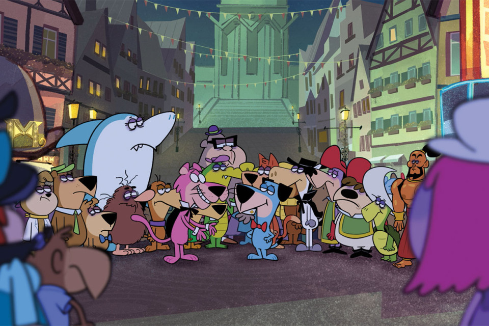 The gang on Jellystone! includes Snagglepuss and Huckleberry Hound (center) and Yogi Bear (left).
