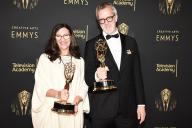 Mark Worthington and Kathy Orlando at the Media Center during night one of the 2021 Creative Arts Emmy Awards.