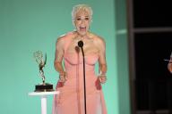 Hannah Waddingham of Ted Lasso accepts the awards for Outstanding Supporting Acress in a Comedy Series at the 73rd Emmy Awards