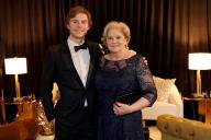 Evan Peters and his mother, Julie Peters, at the Television Academy Foundation's Giving Suite during the 73rd Emmy Awards