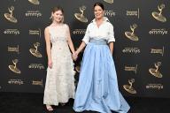 Julitta Dee Harden Scheel and Marcia Gay Harden of The Morning Show and So Help Me Todd backstage at the 2022 Creative Arts Emmy Awards.