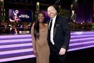 Nia Renée Hill of F Is for Family and Bill Burr of Bill Burr Presents Immoral Compass backstage at the 2022 Creative Arts Emmy Awards.ee