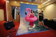 Kacey Arnold and Patrick Baca pose in an immersive photo booth