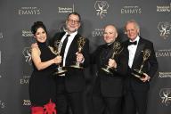 The sound mixing team from Daisy Jones & The Six backstage at the 75th Creative Arts Emmy Awards