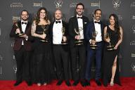 The team of Succession backstage at the at the 75th Creative Arts Emmy Awards