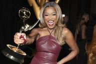 Keke Palmer, host of Password, backstage at the 75th Creative Arts Emmy Awards