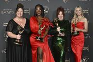 Erin Tomasello, Jazzy Collins, Moira Paris, and Holly Osifat from the casting team of The Traitors backstage at the 75th Creative Arts Emmy Awards