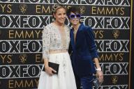 Maria Bello from BEEF and Dominique Crenn on the red carpet at the 75th Emmy Awards