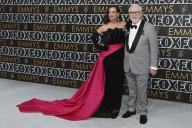 Brian Cox from Succession and Nicole Ansari-Cox on the red carpet at the 75th Emmy Awards