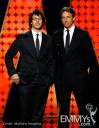 Andy Samberg (L) and Seth Meyers speak onstage during the 62nd Primetime Creative Arts Emmy Awards