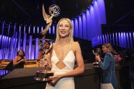 Desi Lydic of The Daily Show, with the award for Outstanding Variety Talk Series, at the 76th Emmy Awards Governors Gala