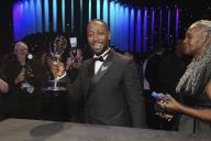 Lamorne Morris of Fargo, with his award for Outstanding Supporting Actor in a Limited Anthology Series or Movie, at the 76th Emmys Governors Gala
