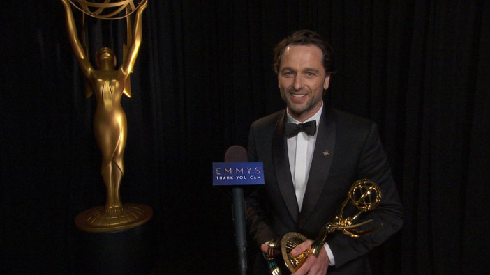 Matthew Rhys talks with the Emmys Thank You Cam after winning for Outstanding Lead Actor In A Drama Series.