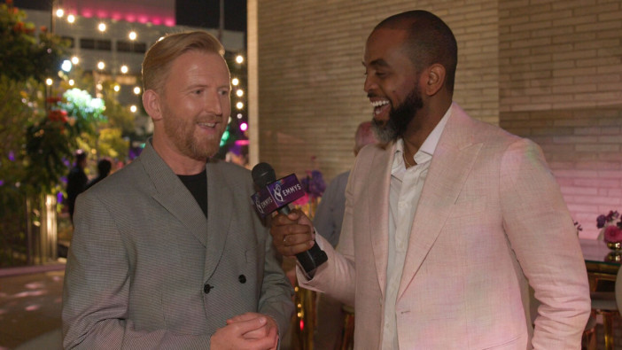 Emmys correspondent Albert Lawrence speaks with Tom Goodman-Hill from Baby Reindeer at the 2024 Performers Nominee Celebration.