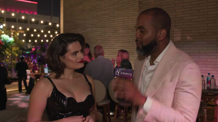 Emmys correspondent Albert Lawrence speaks with Nava Mau from Baby Reindeer at the 2024 Performers Nominee Celebration.