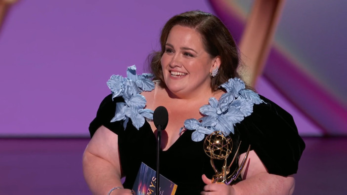 Jessica Gunning accepts the Emmy for Outstanding Supporting Actress In A Limited Or Anthology Series Or Movie for Baby Reindeer at the 76th Emmy Awards.