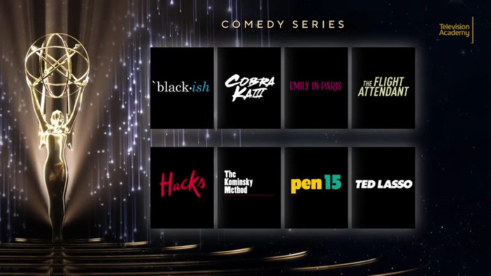 The nominees for Outstanding Comedy Series are`black-ish, Cobra Kai, Emily in Paris, The Flight Attendant, Hacks, The Kominsky Method, Pen15 and Ted Lasso.