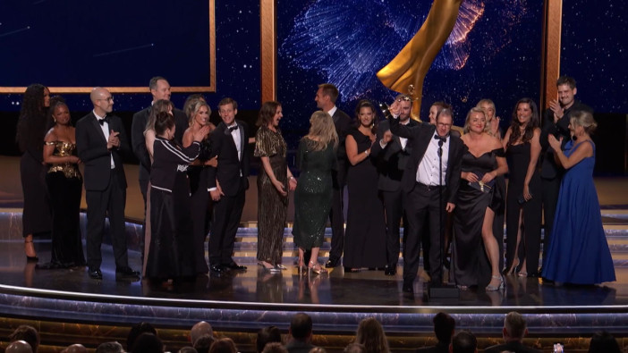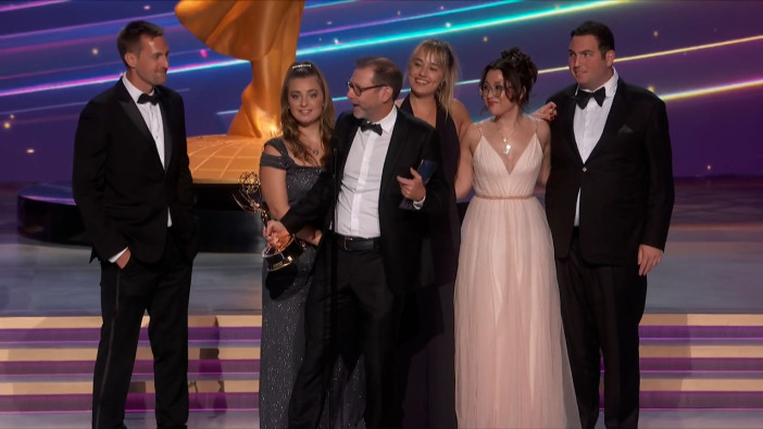 The team from Love On The Spectrum accepts the Emmy for Unstructured Reality Program at the 2025 Creative Arts Emmy Awards.
