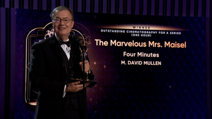 M. David Mullen accepts the Emmy for Cinematography for a Series (One Hour) for The Marvelous Mrs. Maisel at the 75th Creative Arts Emmy Awards.