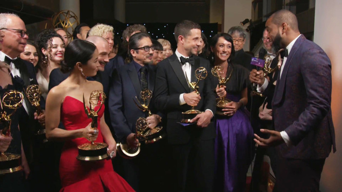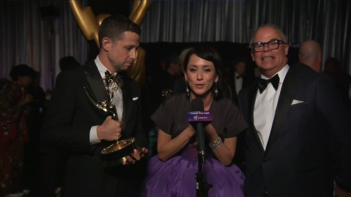 The Team from Shōgun talks to the Emmys Thank You Cam after winning for Outstanding Drama Series.