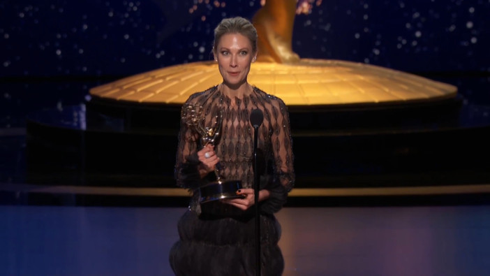 Desi Lydiç from The Daily Show: Desi Lydic Foxsplains, accepts the Emmy for Performer In A Short Form Comedy Or Drama Series at the 2025 Creative Arts Emmy Awards.