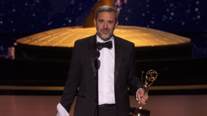 Eric Kissack from The Studio accepts the Emmy for Picture Editing For A Single-Camera Comedy Series at the 2025 Creative Arts Emmy Awards.