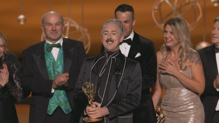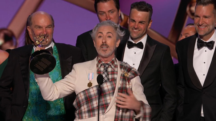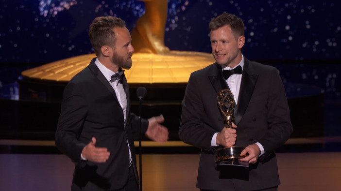 Patrick Owen and James Seddon-Brown from The Traitors accepts the Emmy for Picture Editing For A Structured Reality Or Competition Program at the 2025 Creative Arts Emmy Awards.