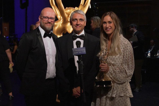 Creative Director Karin Fong accepted the Emmy for Outstanding Main Title Design on behalf of the team from Counterpart. This was the seventh nomination and second win for Fong.